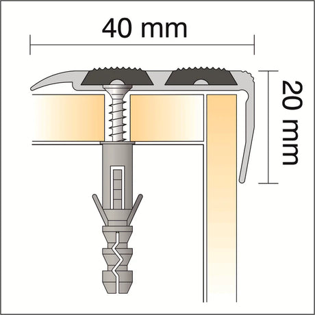 SA11 40 x 20mm Non Slip Rubber Aluminium Stair Nosing Edge Trim With Insert External Use