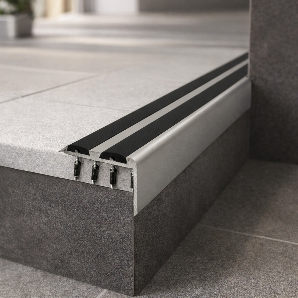 The A37 anodised aluminium stair nosing delivers safety, durability, and value. Its non slip rubber insert and screw-fit design make it a practical solution for large-scale projects where both performance and cost efficiency are important.