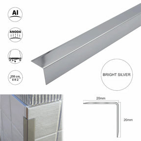 Aluminium Retro-Fit Tile Trim Angle Edge Protector Cladding Corner Trim 20x20mm