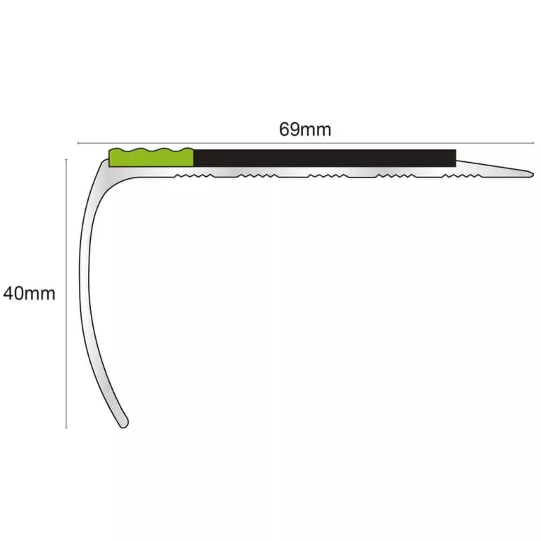 The ASL25 Tredsafe Aluminium Non Slip Stair Nosing is a durable and reliable safety profile designed to protect stair edges while improving slip resistance. With a 69mm tread and 40mm riser, it offers excellent coverage and a professional finish for both commercial and residential projects. Manufactured from high-quality aluminium and fitted with a PVC insert, this nosing combines long-term durability with enhanced grip to reduce accidents on stairs.