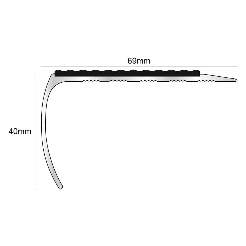 NSL25 Tredsafe 69 x 40mm Aluminium Non Slip Stair Nosing Edge Trim with PVC Insert